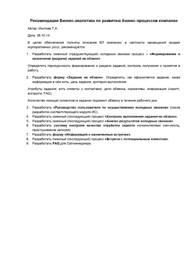 Разработано техническое задание для IT-отдела, донастроен бизнес-процесс.